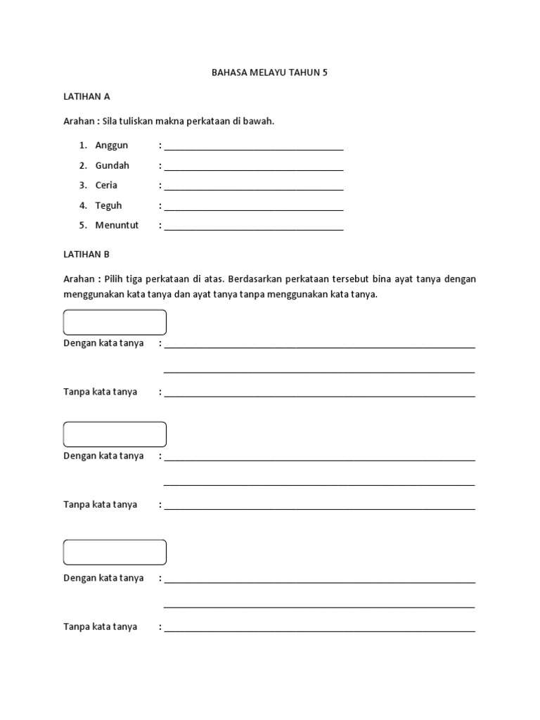 Bahasa Melayu Tahun 5 : Bahasa melayu sejarah tahun 5.. Kertas peperiksaan ini adalah bahasa melayu untuk murid darjah 5 mengikut kurikulum standard sekolah rendah (kssr). Bagaimana setakat ini dengan bahan yang dinyatakan diatas? Soalan bahasa inggeris tahun 1 contoh soalan bahasa melayu via newhairstylesformen2014.com. Kertas model bahasa melayu pra upsr kertas penulisan tahun 5 (sb). Himpunan modul soalan bahasa melayu tahun 4, 5 dan 6.