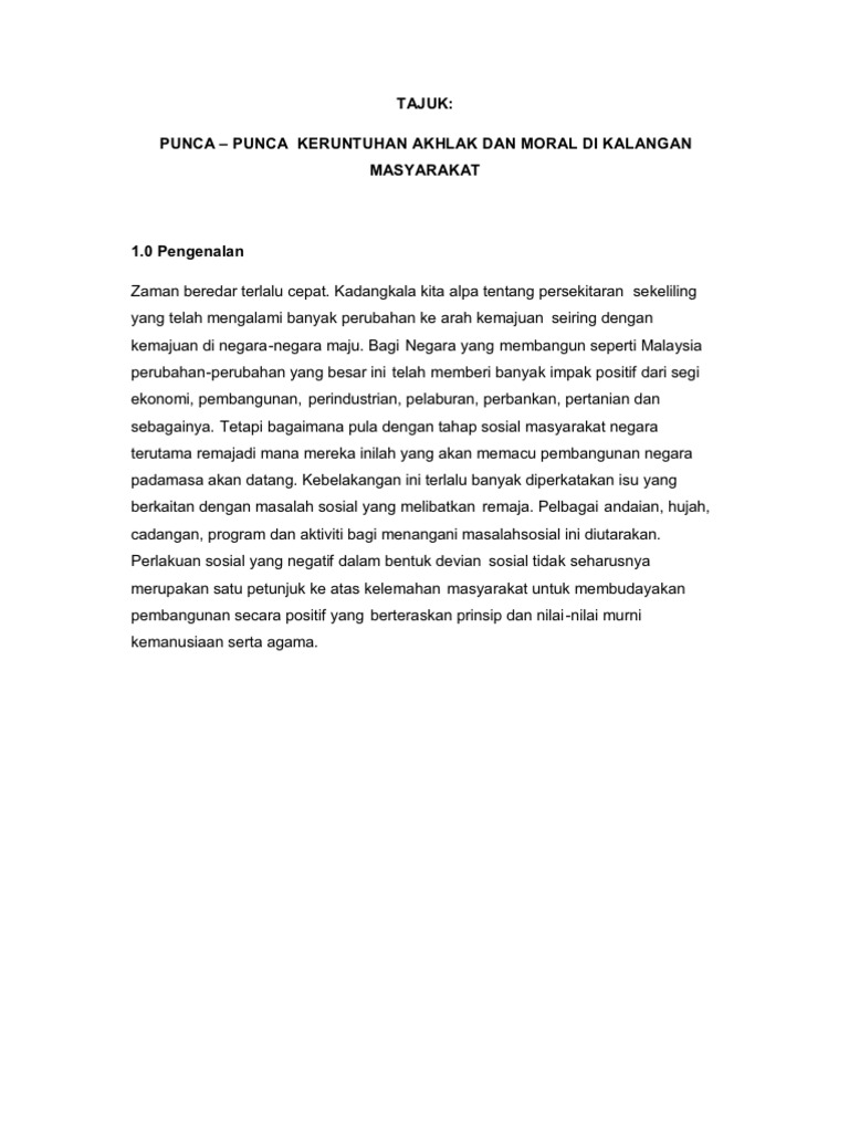 Sharani ahmad, 2004, pts proffesional publishing sdn. Tidak dinafikan akhlak remaja pada hari ini sangat membimbangkan. Punca keruntuhan akhlak these pictures of this page are about:keruntuhan akhlak. Norhedayah bt abd samad sx142545csjf04. Remaja merupakan pemangkin kemajuan sesebuah negara. Kita dilindungi daripada masalah dan pancaroba di dunia luar. Kesan jangka panjang dan jangka pendek pasti akan berlaku seandainya remaja pada hari ini tidak tahu bagaimana untuk membentuk dan memuliakan akhlak mereka. Nurul aneesa binti mustaffa (204414). Masa depan sesebuah negara itu berada di tangan mereka. Remaja merupakan pemangkin kemajuan sesebuah negara. Isu keruntuhan akhlak dan sosial di kalangan remaja by. Pada zaman yang serba canggih ini, pelbagai teknologi telah dibangunkan untuk kegunaan orang ramai namun penggunaan yang terdapat banyak punca yang menyumbang kepada runtuhnya akhlak remaja. Dewasa ini, keruntuhan moral dan akhlak remaja berada pada tahap yang agak membimbangkan.